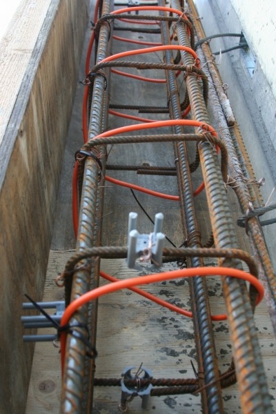 На фото — использование кабеля в опалубке для фундамента