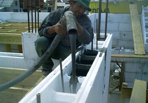 Инструкция во время заливки бетона в опалубку несъемного типа не отличается от основных технологий, используемых во время формирования обычной отливки из бетона: