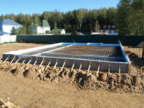 Первым монтажным этапом строительных работ является подготовка основания под будущее здание. В большинстве случаев такие фундаменты изготавливаются из деревянной опалубки, которая демонтируется после полного их высыхания.
