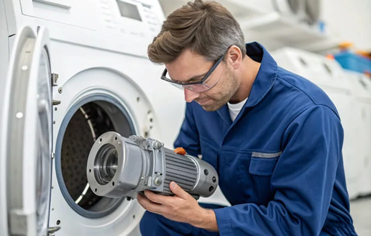 • Двигатель: если отжим не стартует, запустите «Пуск/Стирка» и посмотрите, есть ли вращение в стирке. Нет вращения вообще — проверяйте щётки (коллекторный), обмотки, разъёмы, ESC/инвертор (BLDC).